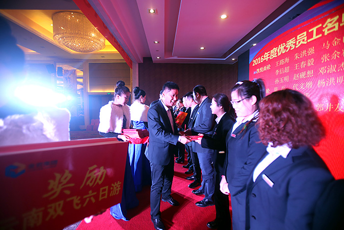 公司領導感謝全體員工一年來的辛苦付出,并頒發了年度杰出經理人、銷售精英、年度最佳團隊、質量控制先鋒以及年度員工代表和優秀員工等獎項,表彰了在2016年工作中表現優異的先進個人和集體。