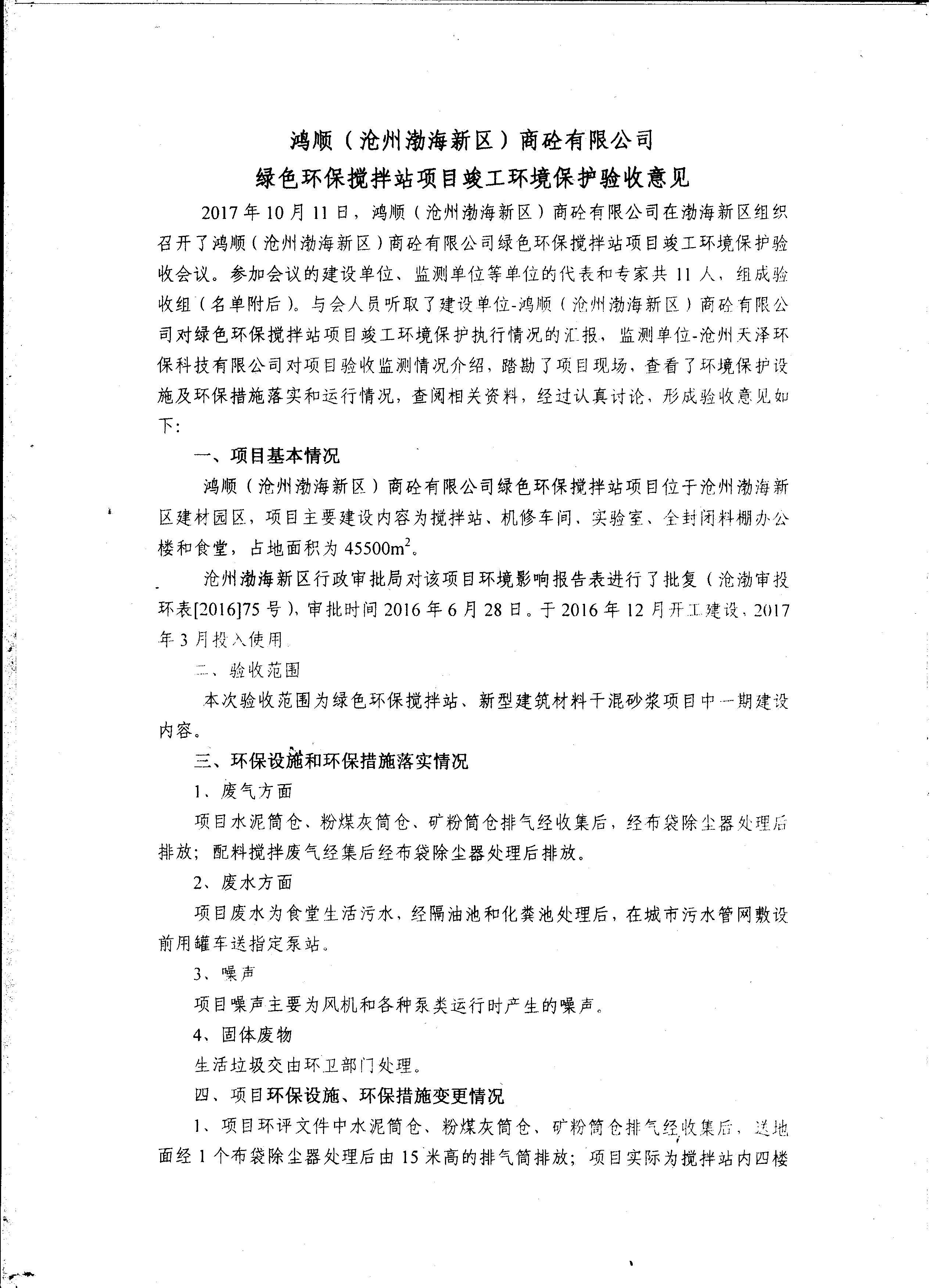 關于鴻順商砼綠色環保攪拌站環境保護驗收公示